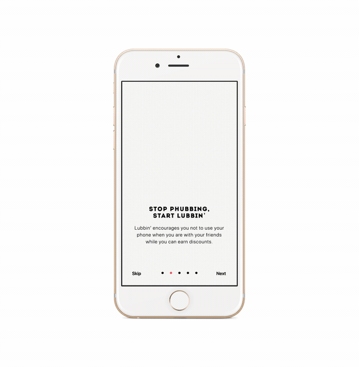 After extensive research, I discovered that, ironically enough, this problem could be solved by an app! So that’s why I designed one, called Lubbin’. This app rewards you and your friends when you decide to put away your phones during a social event, and pay attention to each other instead.