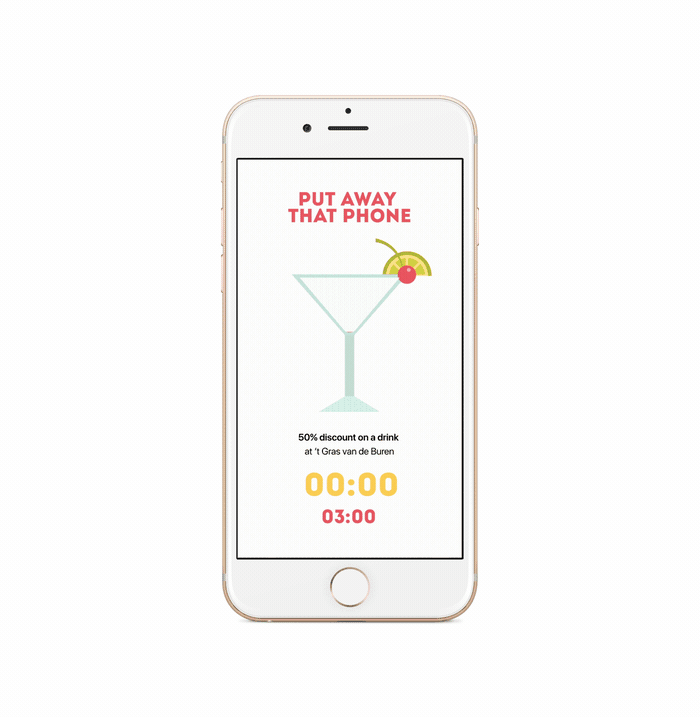 For my graduation project I was asked by Kaliber Interactive to think of a solution for ‘phubbing’. Phubbing is the act of snubbing someone in a social setting by looking at your phone instead of paying attention to them.
